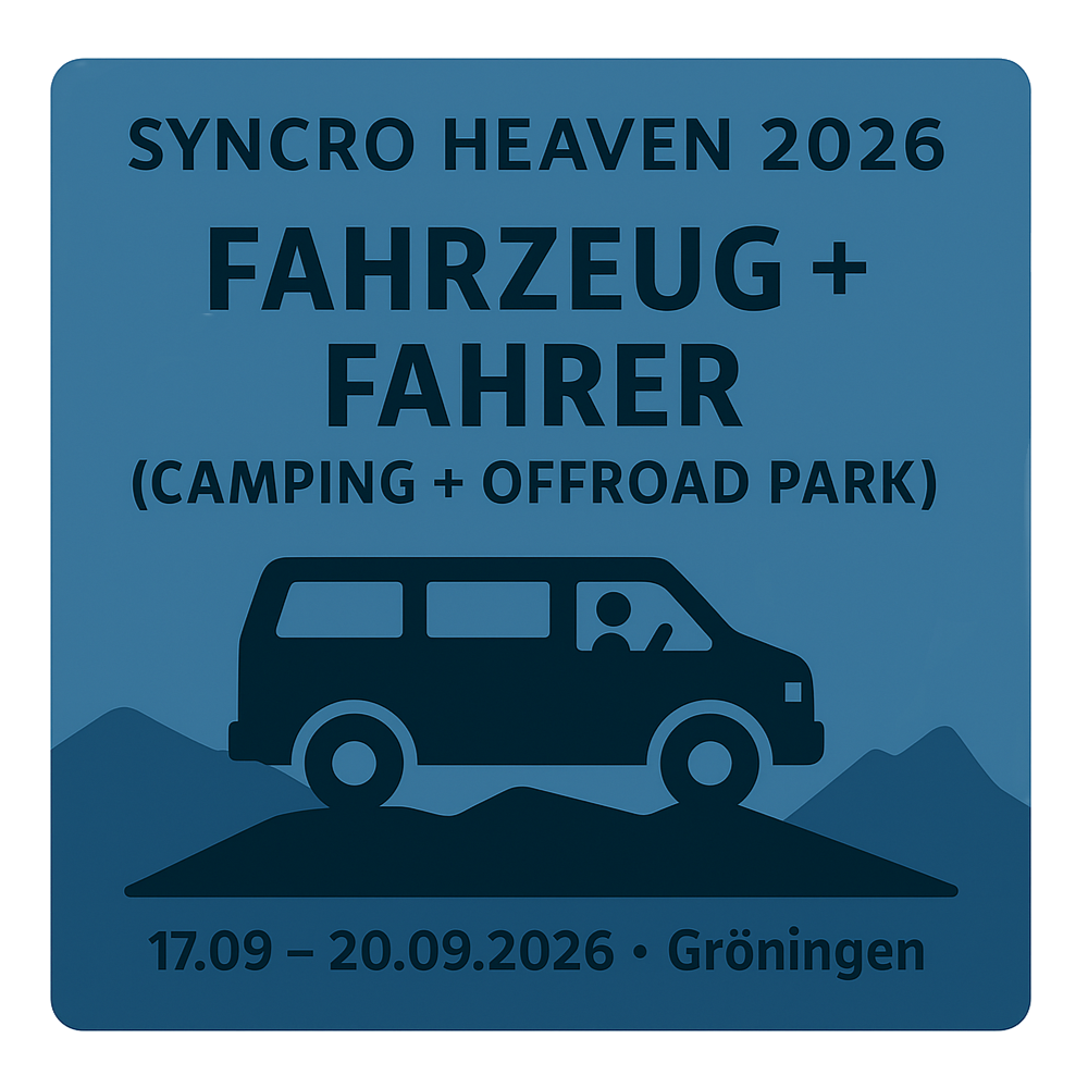 Unsere Community freut sich auf jeden, der einen VW fährt und Lust auf ein unvergessliches Wochenende hat. Egal, ob du schon lange dabei bist oder zum ersten Mal reinschnupperst – im Syncro-Heaven 2026 findet jeder seinen Platz. Wir feiern die Vielfalt unserer VW-Community, von den Offroad-Abenteurern bis zu den gemütlichen Campern. Komm vorbei, genieß die gemeinsame Zeit und fühl dich wie zu Hause.